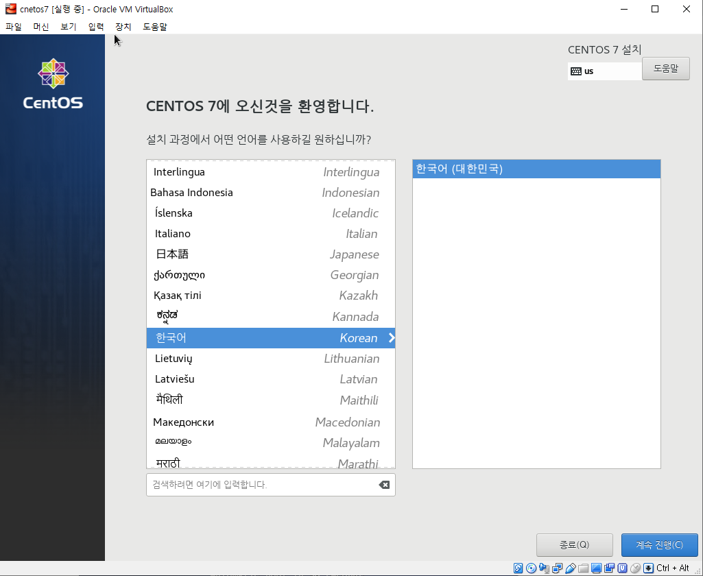 4.사용할 언어 선택하는 화면으로 'korean(한국어)'선택 후 'next'